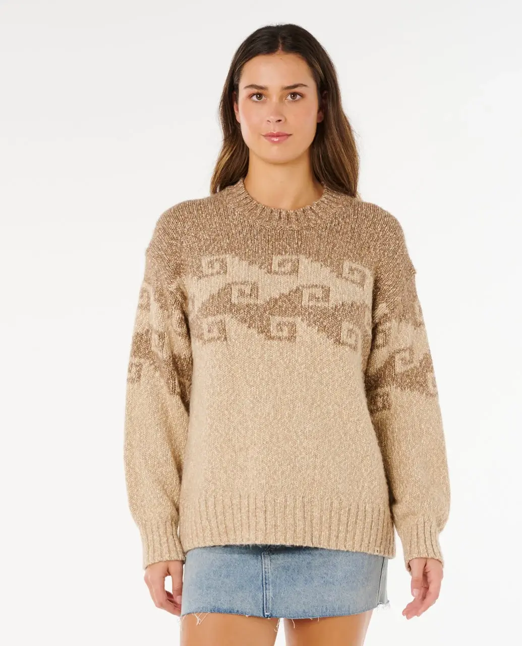 Jacquard knit pattern and rib details make the Pacific Coast Sweater a standout, finished with a relaxed fit and metal logo trim for cozy surf style.
